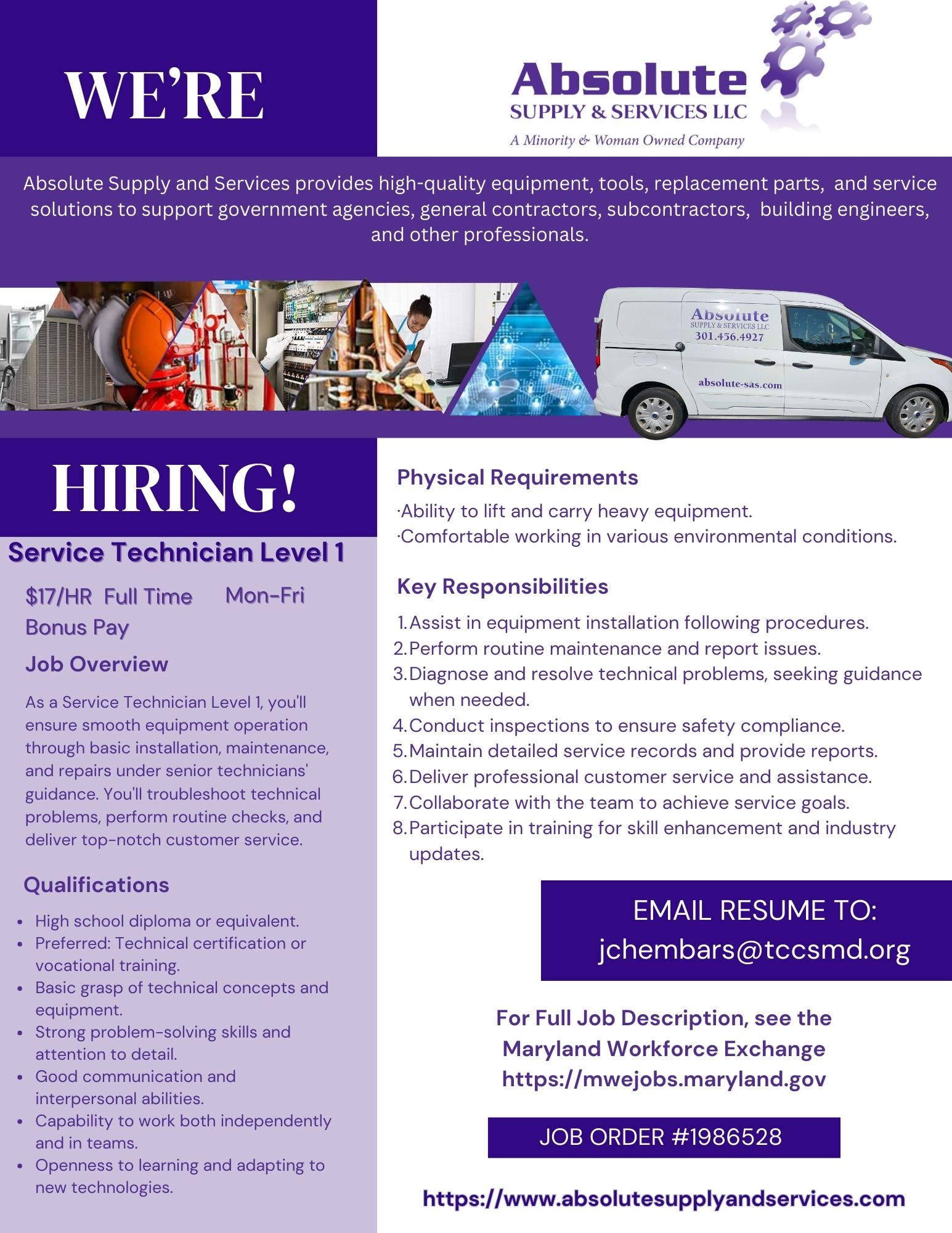Absolute Supply & Services LLC is Hiring Posted Date: Tuesday January 2, 2024 View Flyer for more details. rtruslow2024-01-06T09:30:16-05:00January 6th, 2024| Share This Story, Choose Your Platform! FacebookXRedditLinkedInTumblrPinterestVkEmail Related Posts #1 New York Times Bestselling Author Kwame Alexander in Calvert County on March 9 #1 New York Times Bestselling Author Kwame Alexander in Calvert County on March 9 Construction Manufacturing & Transportation Job Fair Construction Manufacturing & Transportation Job Fair Charles County Job Fair Charles County Job Fair Pop-up Job Fair Pop-up Job Fair Customized recruitment with Prince George’s County Police Department Customized recruitment with Prince George’s County Police Department