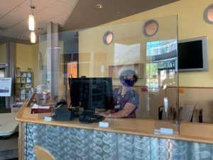 For more information, call Robyn Truslow at 410-535-0291.[] Photo: Plexiglass has been installed on library service desks to improve the safety of customer-staff interactions. Library Assistant Joan Fletcher pulls the Curbside appointments report for the next day at Calvert Library Prince Frederick.