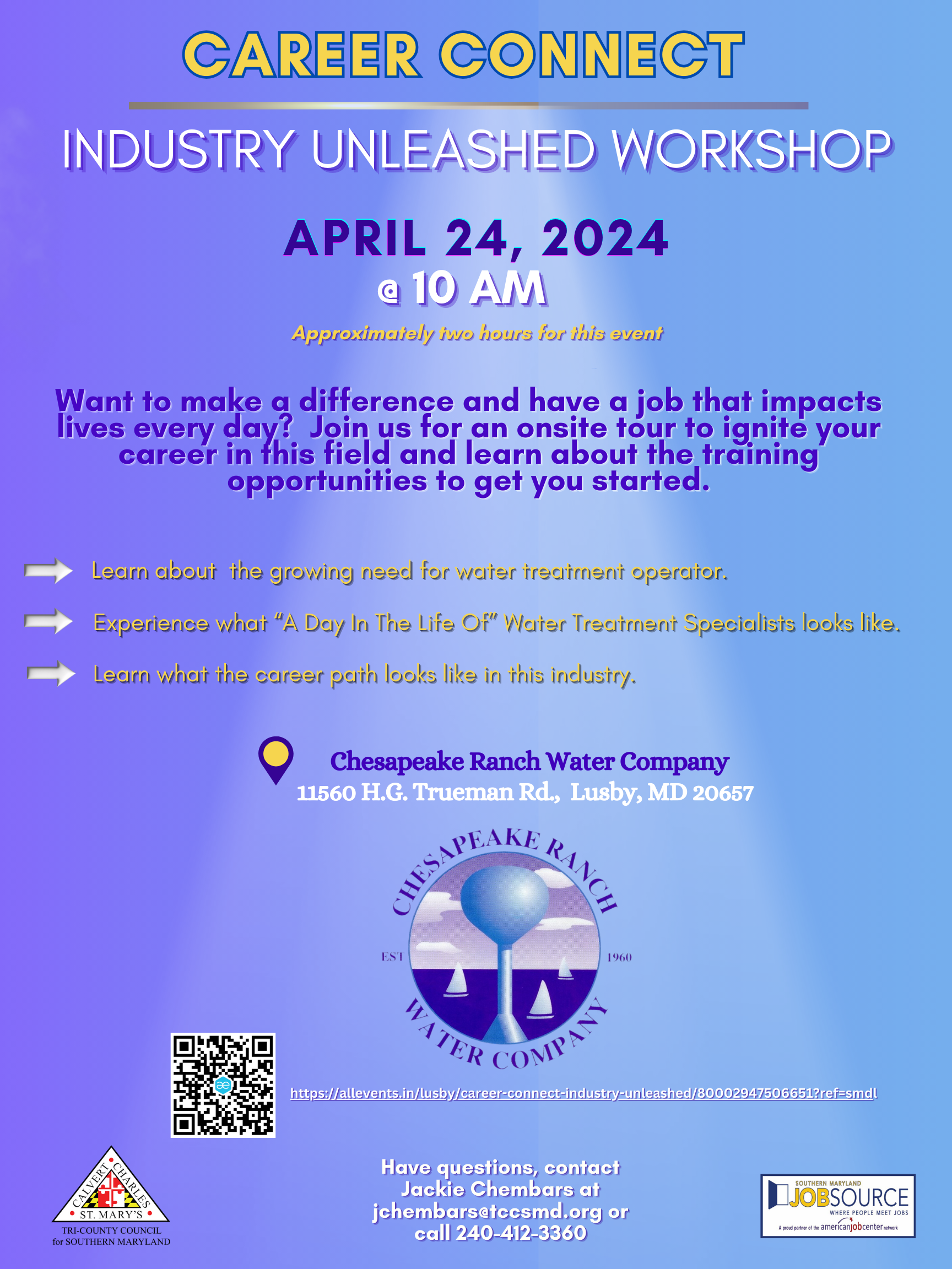 Career Connect water treatment operator Date: April 24th: 10AM-12PM View Flyer for more details. rtruslow2024-04-11T18:20:28-04:00April 11th, 2024| Share This Story, Choose Your Platform! FacebookXRedditLinkedInTumblrPinterestVkEmail Related Posts Pop-up Job Fair Pop-up Job Fair Calvert County Job & Internship fair Calvert County Job & Internship fair Veterans Federal Workforce Job Fair Veterans Federal Workforce Job Fair ResCare customized recruitment ResCare customized recruitment CORRECTED Giants of This World Art Exhibit at Calvert Library Twin Beaches Branch CORRECTED Giants of This World Art Exhibit at Calvert Library Twin Beaches Branch
