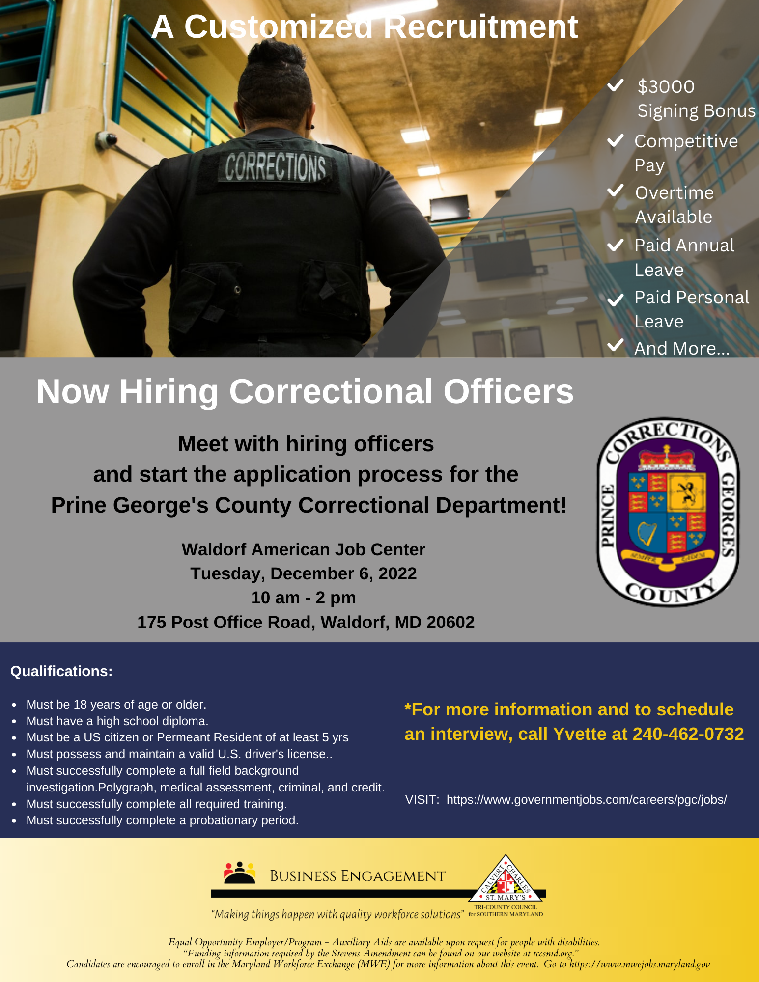Hiring Correctional Officers PG County Correctional Department Time: 10AM-2PM Location: Waldorf, MD View Flyer for more details. rtruslow2022-11-22T10:27:40-05:00December 6th, 2022| Share This Story, Choose Your Platform! FacebookXRedditLinkedInTumblrPinterestVkEmail Related Posts #1 New York Times Bestselling Author Kwame Alexander in Calvert County on March 9 #1 New York Times Bestselling Author Kwame Alexander in Calvert County on March 9 Construction Manufacturing & Transportation Job Fair Construction Manufacturing & Transportation Job Fair Charles County Job Fair Charles County Job Fair Pop-up Job Fair Pop-up Job Fair Customized recruitment with Prince George’s County Police Department Customized recruitment with Prince George’s County Police Department