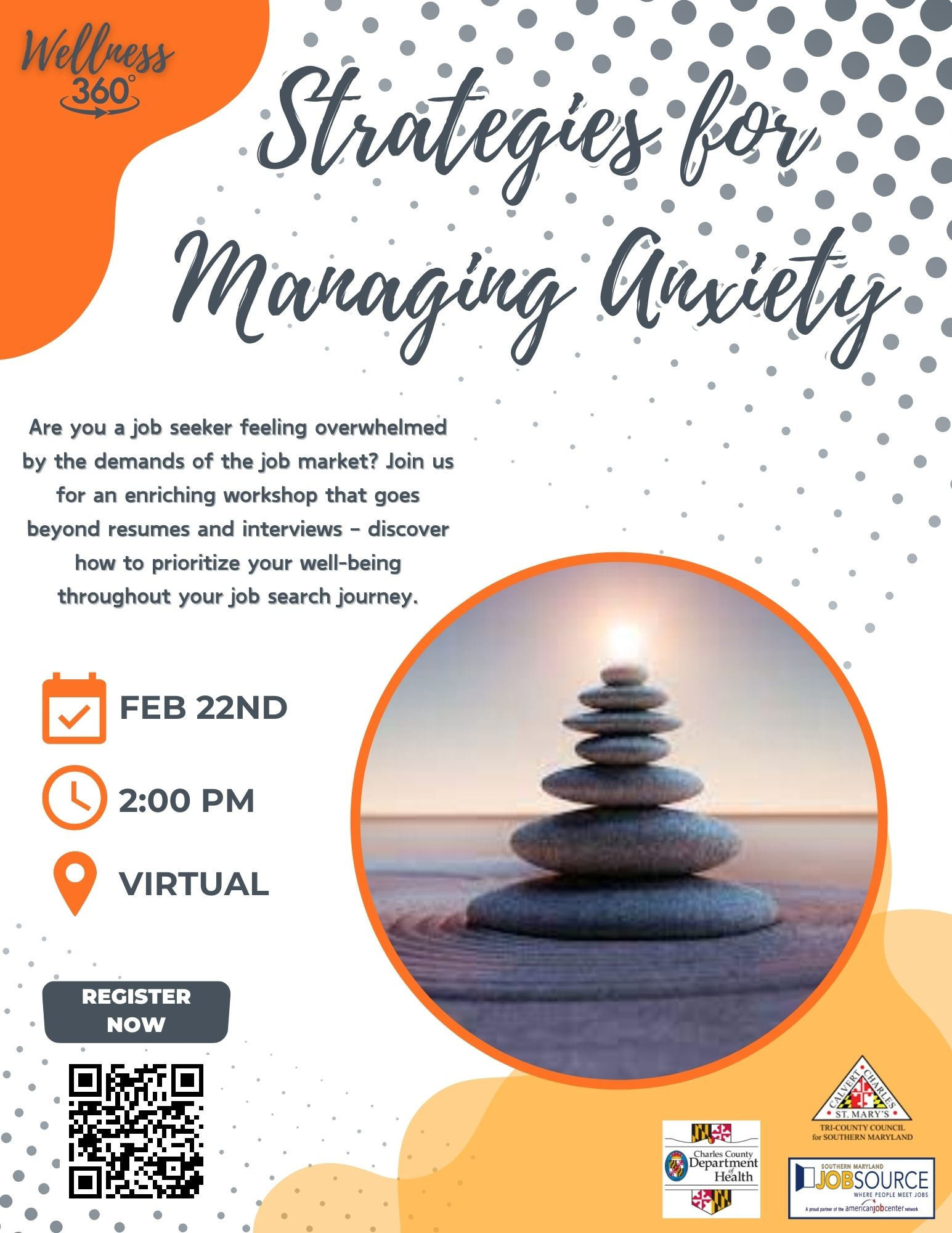 Strategies for Managing Anxiety Feb 22 at 2pm (Virtual) View Flyer for more details. rtruslow2024-02-13T09:42:22-05:00February 13th, 2024| Share This Story, Choose Your Platform! FacebookXRedditLinkedInTumblrPinterestVkEmail Related Posts #1 New York Times Bestselling Author Kwame Alexander in Calvert County on March 9 #1 New York Times Bestselling Author Kwame Alexander in Calvert County on March 9 Construction Manufacturing & Transportation Job Fair Construction Manufacturing & Transportation Job Fair Charles County Job Fair Charles County Job Fair Pop-up Job Fair Pop-up Job Fair Customized recruitment with Prince George’s County Police Department Customized recruitment with Prince George’s County Police Department